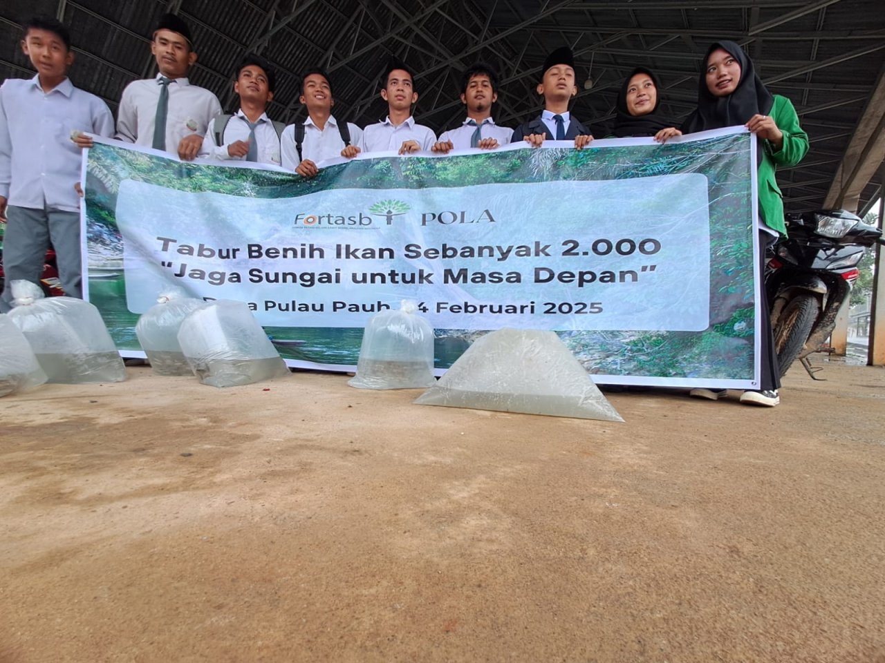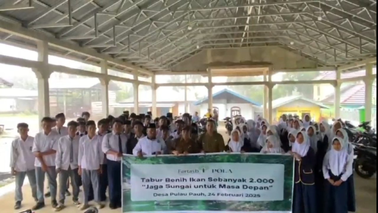 Forum Petani Kelapa Sawit Berkelanjutan Indonesia (FORTASBI) didukung POLA, serta petani sawit swadaya dan Pemerintah Desa Pulau Pauh, melibatkan pelajar untuk mencintai dan menjaga sungai.